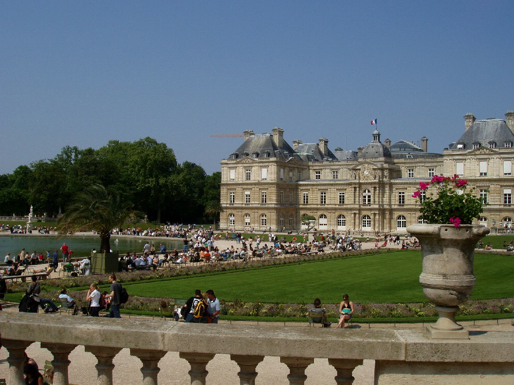 パンテオンの横丁で、朝からポケットに入れっぱなしの絵葉書をようやく出せた。 近くでジャンボンと、入り口でジェラートを買って、 リュクサンブール公園にいった。 なんてのんびりしているんだろう! 今日はメーデーだしパリだから、 なんか起きるかもと思って市内から出ずに いろんなトコに行ってみようと思ってたのに、 平和すぎる。天気もよくって最高だった。 芝生のところなんか、もっと人が多かった。 素直にいい町だと思われた。 サンドイッチのジャンボンだが、ガイドブックには 「街角のジャンボンはどれも最高」などと書いているが、 フランスパンに、レタス、トマト、ゆで卵などを挟んだだけなので、 不味くなりようもない。 料理というか、ほとんど素材そのものの味じゃん、 などとブツブツ思いながら、けっこうなボリュームを全部食べちゃった。