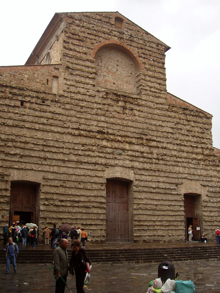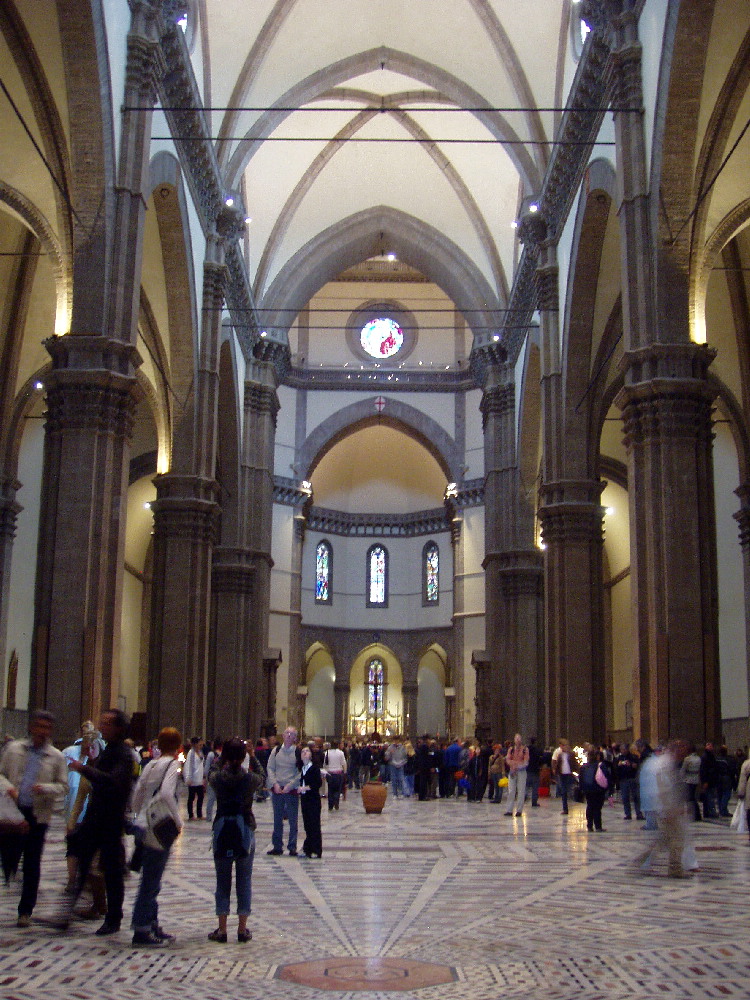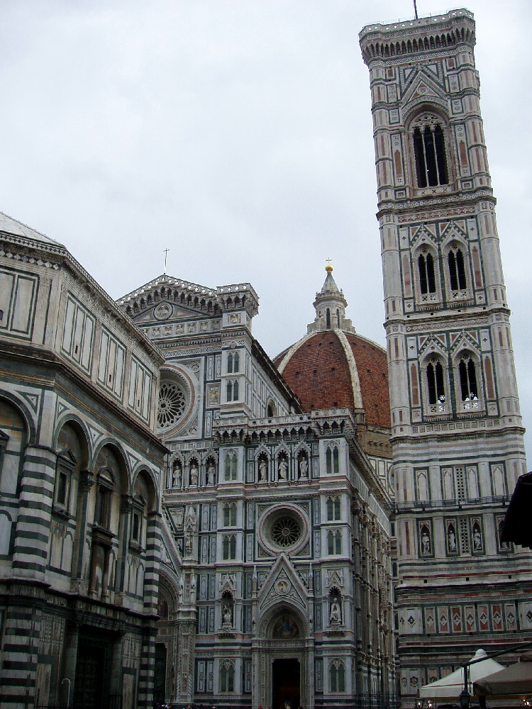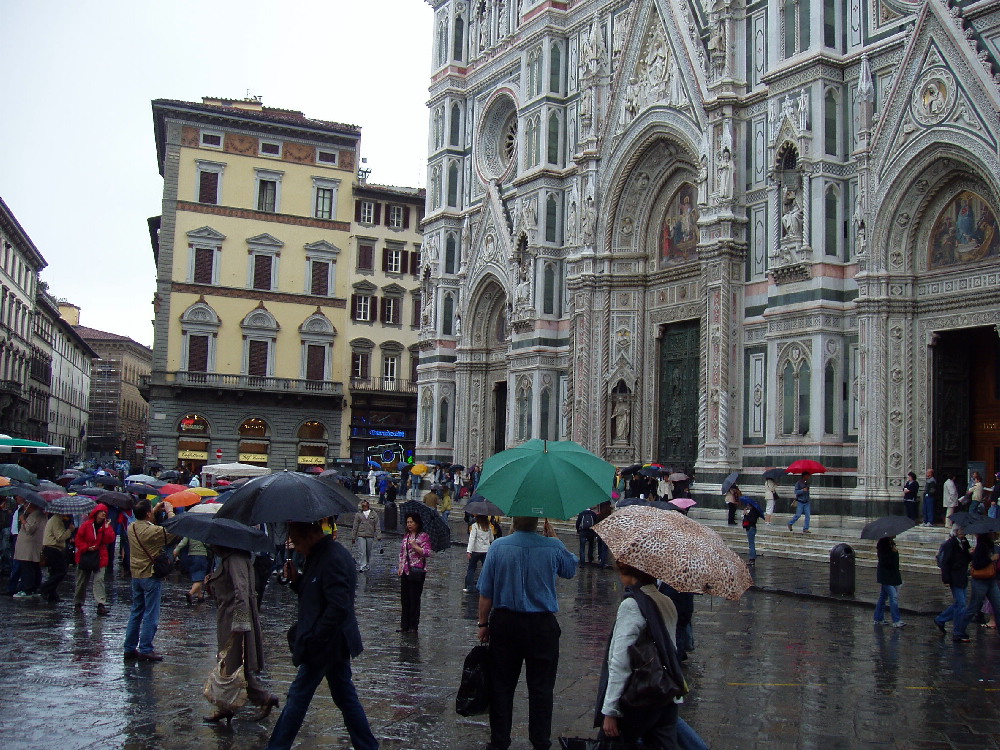 土産屋のおっさんたちが折り畳み傘を売ってくる間をぬけて、 ラウレンツィアーナ図書館に入ろうとしたが、もう閉まっていた。 とても残念だったけれど、落ち込んでいるひまもなかった。 ●《メディチ家礼拝堂》 ここはノーマークだったが、感動は大きかった。 ここでもブルネレスキは緑を使っていた。 |